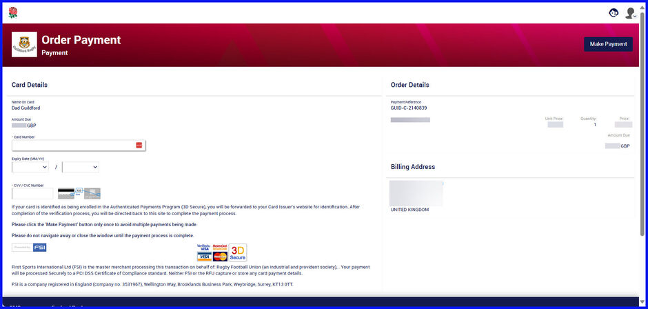 If more organisations are shown, ensure Guildford RFC is selected before clicking "Buy Membership".