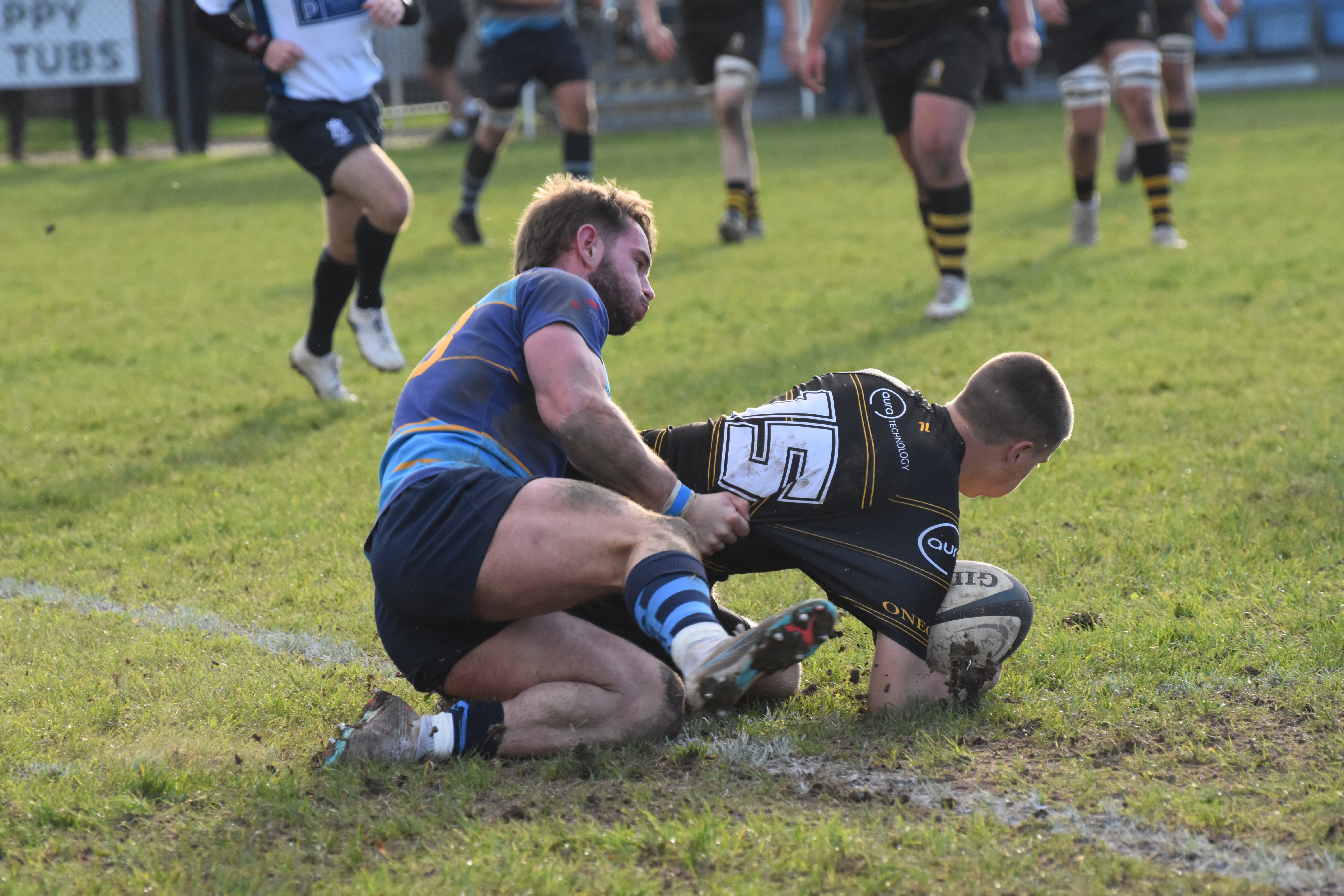 Despite finding themselves pinned in their own half for long stretches, Guildford’s defensive effort was wholehearted. Louis Bounds tackled tirelessly, supported by strong defensive shifts from Devereux and Karimian. It took until the 25th minute for Winchester to break through again for a converted try, quickly followed by another to claim the bonus point at 26-0.
